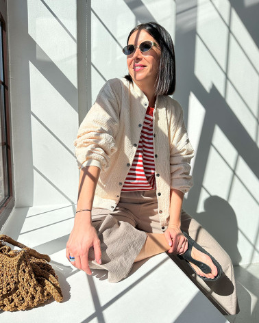 Quick view Add to cart Cream corduroy jacket made... Price 549.00 zł The latest proposal is a navy blue corduroy bomber jacket made of soft, flowing fabric with a thick stripe and lining. The jacket is...