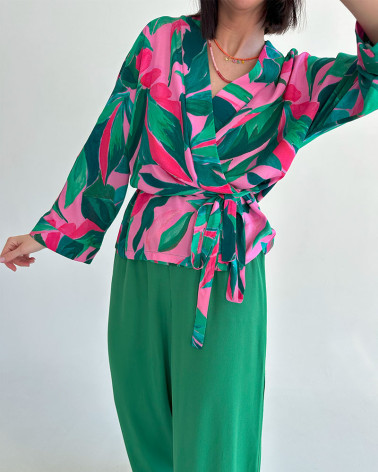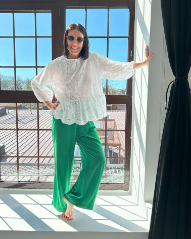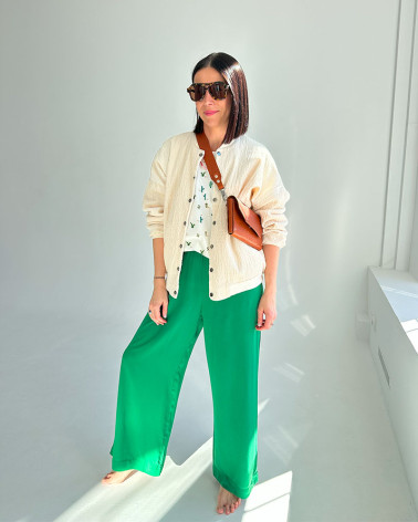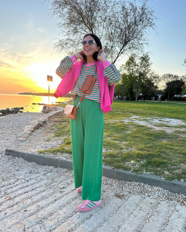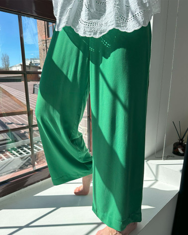 MOSSA LONG VERDE trousers our bestselling model of trousers with a straight cut made of crinkled viscose with the addition of polyamide this time in two new colours GREEN and the second amaranth.