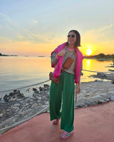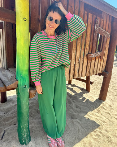 MOSSA LONG VERDE trousers our bestselling model of trousers with a straight cut made of crinkled viscose with the addition of polyamide this...
