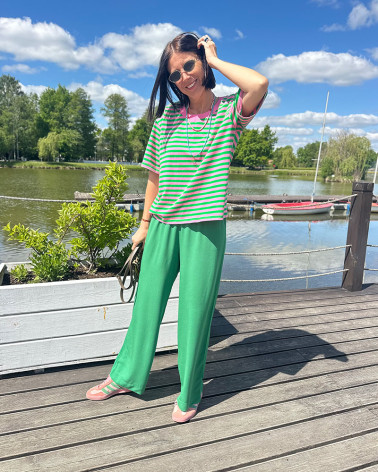MOSSA LONG VERDE trousers our bestselling model of trousers with a straight cut made of crinkled viscose with the addition of polyamide this...