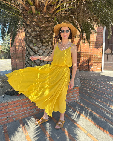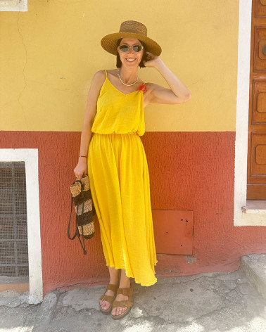 This long jumpsuit has been designed with comfort and style in mind. Equipped with practical pockets on the sides and adjustable straps, it fits perfectly to any figure.