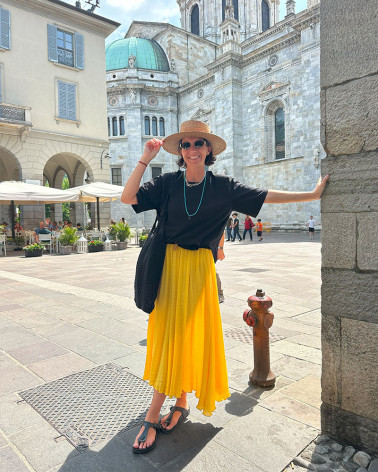 An elastic band at the waist ensures comfortable wearing and emphasizes the figure. The perfect choice for any occasion, from everyday outings to special events.