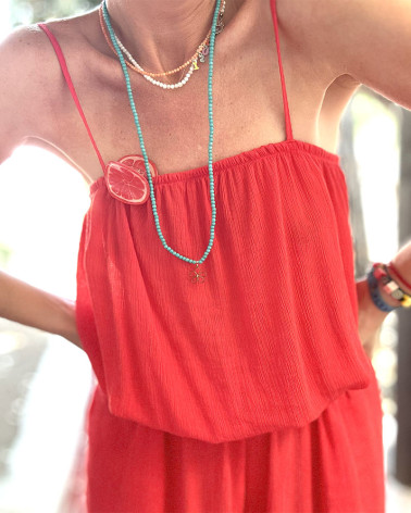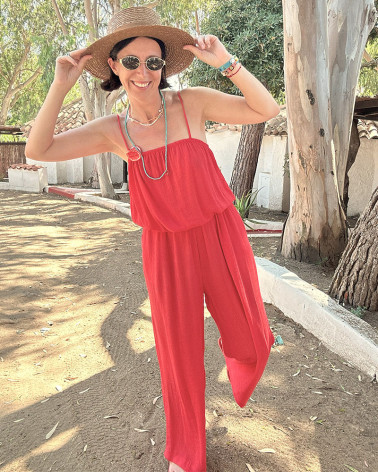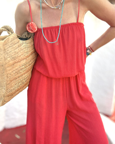 This long jumpsuit has been designed with comfort and style in mind. Equipped with practical pockets on the sides and adjustable straps, it fits perfectly to any figure.
