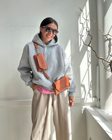 The material is fleshy and pleasant to the skin. GRASSO is finished with a ribbed cuff, thanks to which the sweatshirt fits very nicely to the body. The bottom of the sweatshirt is finished with a skin-friendly fluff.