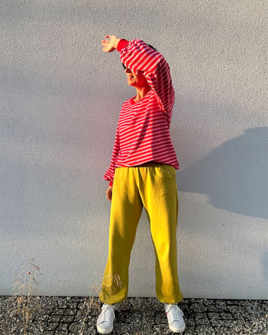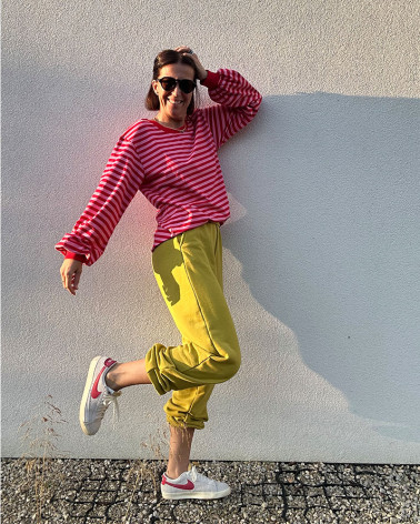 Wider cuff at the neckline made of thicker rib knit fabric. Extended blouse sleeves to make each of us feel more comfortable and at the same time fashionable, and we focused on a slightly longer form.