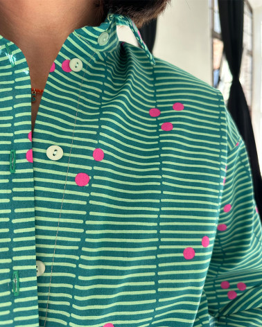 Najnowsza koszula w poziome paski z kropeczkami wykonana ze 100% bawełny to nasza propozycja na cały rok.