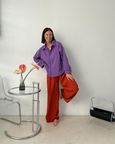 Koszula  STRIPE o pudełkowym kroju z szerokimi mankietami przy rękawach w kolorze ciemnego fioletu z brudnym różem.