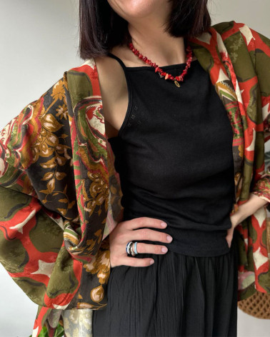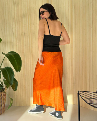 TOP ma dekolt typu halter z przodu oraz wykończony z tyłów również jest na prosto. Głębokość dekoltu z tyłu zrobiliśmy tak aby można było swobodnie ubrać pod top bieliznę, której nie będzie widać.