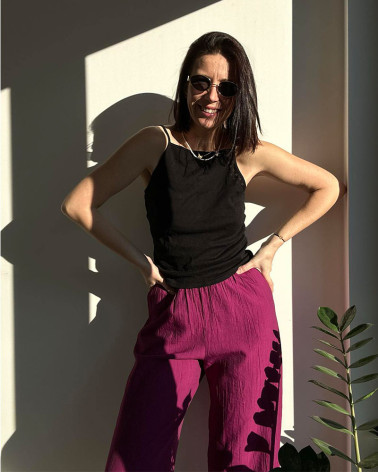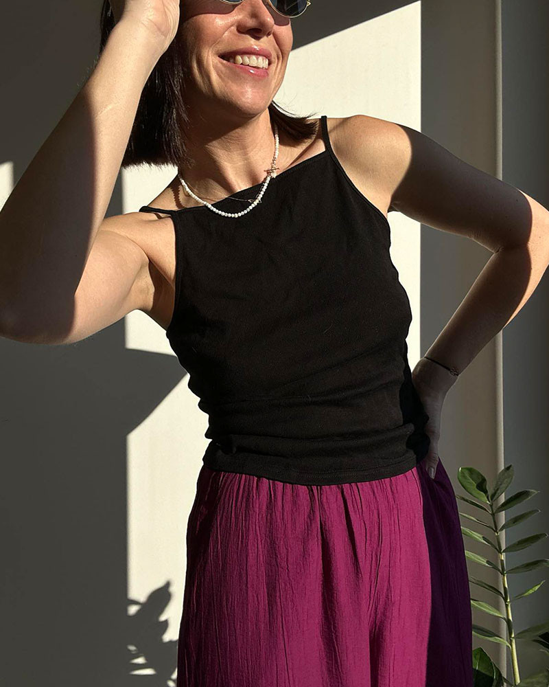 Top Simple Black to nasz najnowsza propozycja na ramiączkach uszyta ze 100% bawełny. Dzianina ma charakterystyczną strukturę typu pointelle.