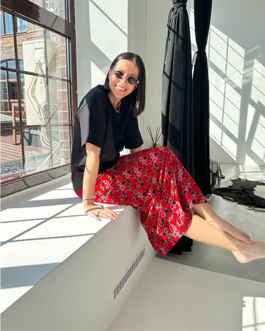 Szerszy ściągacz przy dekolcie zrobiony z grubszej dzianiny ściągaczowej. Wydłużone rękawy bluzki aby każda z nas czuła się bardziej komfortowo a przy okazji i modnie oraz postawiliśmy na trochę dłuższą formę.