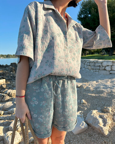 Krótkie spodenki ze 100% bawełny w tłoczone kwiaty