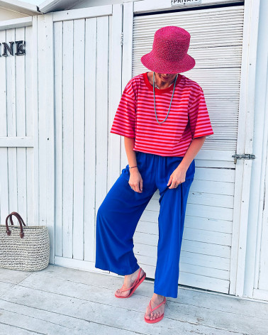 Spodnie AZUL stworzą piekną stylizację z naszą lniano-wiskozową niebieską koszulą czy z czerwono-różowym t-shirtem ale sprawdzi się w wielu rożnych stylizacjach formalnych ale również weekendowych.