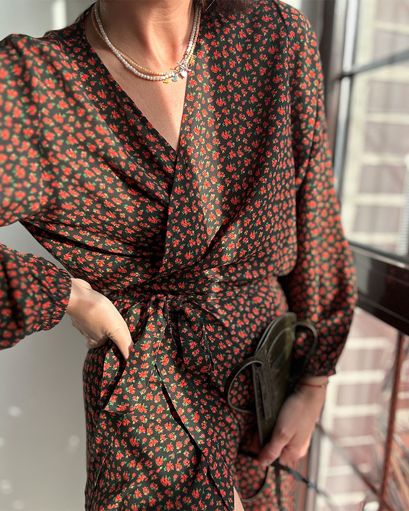 Kopertowa sukienka w delikatny wzór to nasza najnowsza propozycja na jesień i zimę