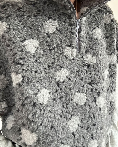 Kamizelka Damska z Mięsistego Futrzaka w Groszki – Szara Postaw na ciepło, wygodę i styl!