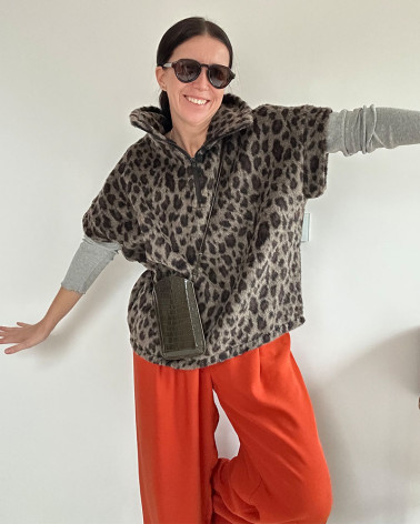 Kamizelka Damska z Alpaki i Kaszmiru w panterkę.