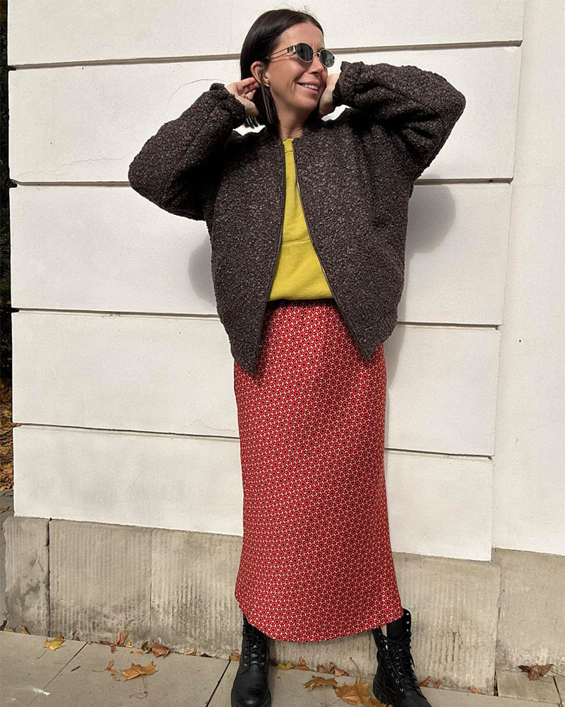 Spódnica midi szyta ze skosu to połączenie kobiecości i codziennej wygody.
