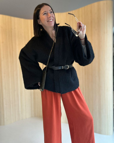 Krótkie Wełniane Kimono BLACK